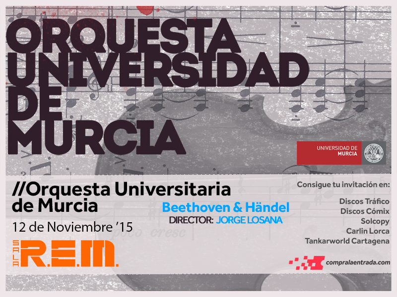 el próximo jueves, día 12 de noviembre, la Orquesta Universitaria de Murciaofrecerá un concierto en la Sala REM de Murciaa las 22:30 h., e interpretará una selección de obras de Beethoven y Händel bajo la dirección de Jorge Losana.