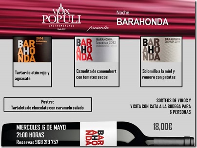 Si eres un apasionado del vino y aún no conoces la bodega Barahonda, puedes hacer una cata el próximo Miércoles 6 de Mayo en Vox Populi Gastromercado