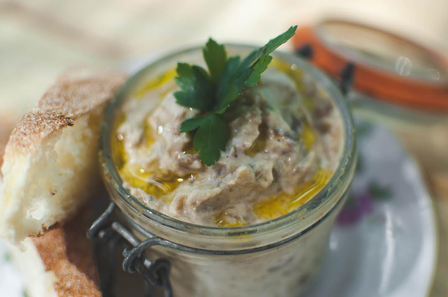 - - Paté de berenjenas asadas con yogur griego y tahini