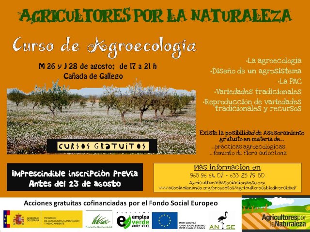 Imprescindible inscripción previa: hasta el 23 de agosto en ANSE. Tfn. 633 25 79 80 Correo electrónico agricultura@asociacionanse.org