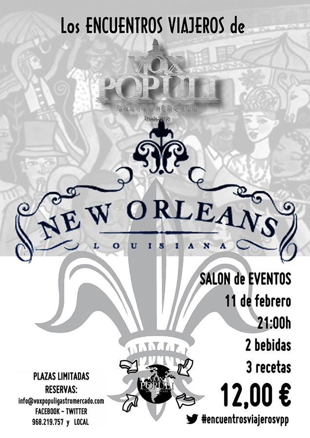 Vuelven los "Encuentros viajeros" a Vox Populi , este Miércoles 11 de Febrero volamos hacia New Orleans cuna del Jazz y de la comida Cajún y Criolla.