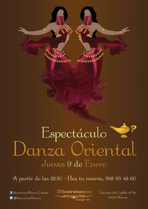 El jueves, 9 de enero, en la tetería Sharanam podrás disfrutar del espectáculo de Danza Oriental a partir de las 22:30 horas.