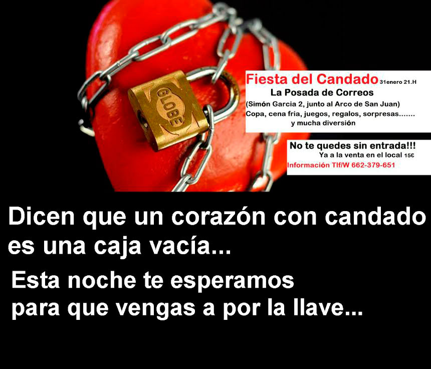 ¿Estás buscando a aquella persona que tenga la llave de tu corazón?, que tal si te apuntas a la "Fiesta del candado" que organizan en "La Posada de Correos" este Sábado 31 de Enero.