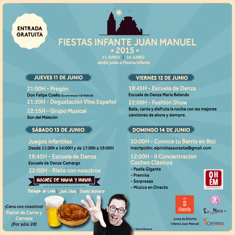 El barrio del Infante Juan Manuel está de fiestas, y nos tiene preparada una agenda de eventos de lo más interesante desde el Jueves 11 de Junio hasta el Domingo 14 de Junio: