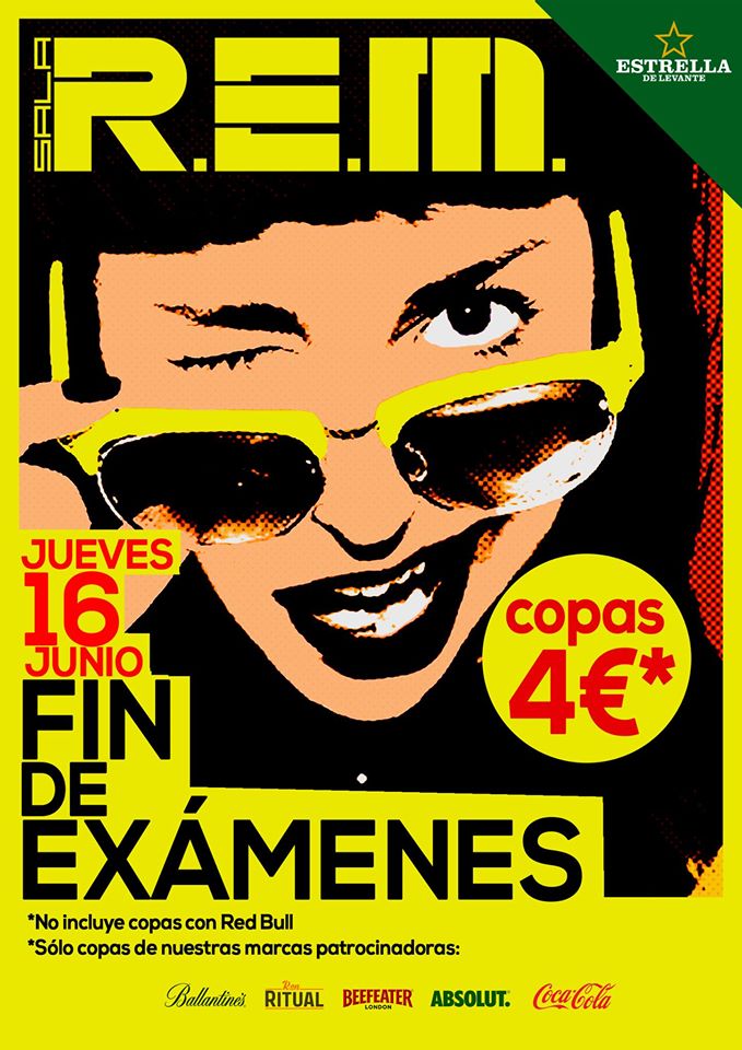 El 16 de Junio toca celebrar el fin de exámenes con una noche a precio especial gracias a nuestras marcas patrocinadoras: Ballantine's, Ron Ritual, Beefeater Gin London, Absolut y Coca-Cola.