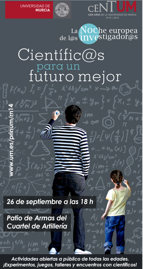 La Universidad de Murcia, a través de la Unidad de Cultura Científica y Promoción de la Investigación, se une a esta iniciativa por séptima vez con una jornada repleta de experimentos, juegos, talleres y encuentros con científicos, que mostrará la cara más cercana de la ciencia y de los investigadores, en un ambiente lúdico donde podremos disfrutar en familia, con amigos o “por uno mismo”.