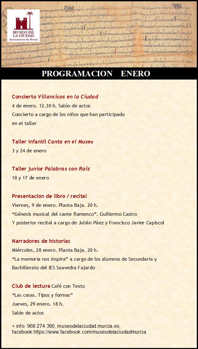 Más información: 968 274 390 museodelaciudad.murcia.es