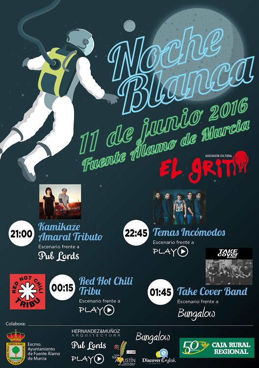 Mañana sábado 11 de junio se celebrará en Fuente Álamo de Murcia el evento Noche Blanca, organizado por la Asociación Cultural El Grito.