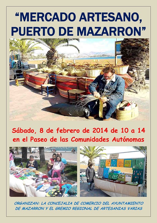 Este sábado 8 de febrero tendrá lugar una nueva edición del ‘Mercado Artesano’ que organiza el Gremio Regional de Artesanías Varias y la concejalía de Comercio del Ayuntamiento de Mazarrón. Como viene siendo habitual, la plaza de las Comunidades Autónomas de Puerto de Mazarrón será el lugar que acogerá este mercado que se celebrará entre las 10 y las 14 horas.
