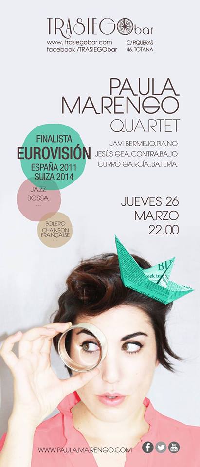 Este jueves 26 de Marzo PAULA MARENGO QUARTET (Jesús Gea Marcos, Curro García y Javier Bermejo Jódar) estará en Trasiegobar a partir de las 22:00 horas.