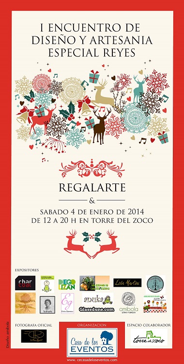 El próximo sábado 4 de enero, de 12:00 a 20:00 horas, la finca-restaurante ‘Torre de Zoco’ acogerá el I Encuentro de Diseño y Artesanía, ‘Regalarte’, Especial Reyes 2014. Un evento que estará organizado por la empresa murciana de promoción de actos y asesoría en protocolo, ‘Casa de los Eventos’, con motivo de la entrada del nuevo año 2014.