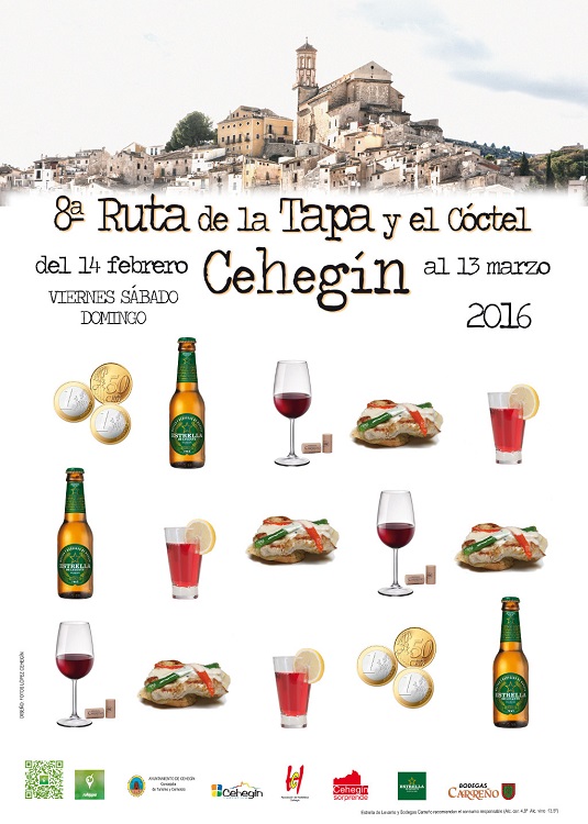 Hasta el próximo 13 de marzo podremos disfrutar de la 8ª Ruta de la Tapa y el Cóctel que se está celebrando en la localidad de Cehegín. En esta edición, la ruta cuenta con la participación de un gran número de bares y restaurantes en los que podrás degustar una tapa más bebida o un cóctel por 2'50 €.
