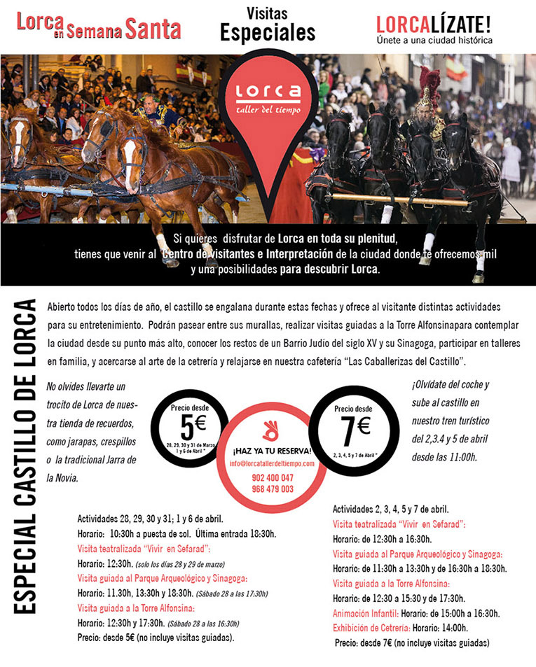 Reservas en info@lorcatallerdeltiempo.com y en el 902 400047 – 968 479 003