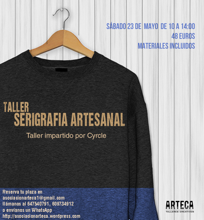 Asociación Arteca trae este taller donde se explora la técnica tradicional de la serigrafía y se adquieren los conocimientos necesarios para crear nuestras propias serigrafías de forma autónoma. Todo ello con materiales alternativos que permitan crear posteriormente al alumno su propio taller con un bajo presupuesto y resultados profesionales.