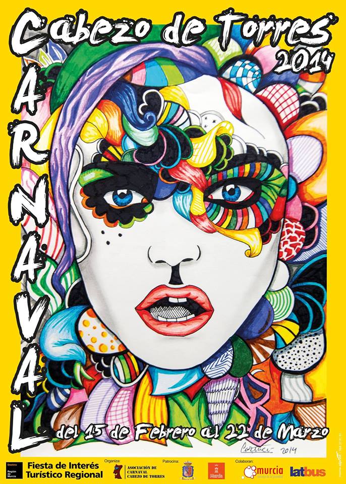 21 h. Pregón de Carnaval y Presentación de la Musa y el Muso 2014. (Auditorio de Cabezo de Torres). Pregonero: Nacho Guerrero, actor. ("Coque" en la serie "La que se avecina"). Entrega de la insignia del Carnaval a la comparsa Karraskalejas y máscara de Carnaval 2014 a D. Juan Vivancos, Cronista de Cabezo de Torres. Actuaciones de la Chirigotas de Cabezo de Torres y "Ni a casico hecho". Amenizará la velada el Grupo de Majorettes Twirling Monteagudo.