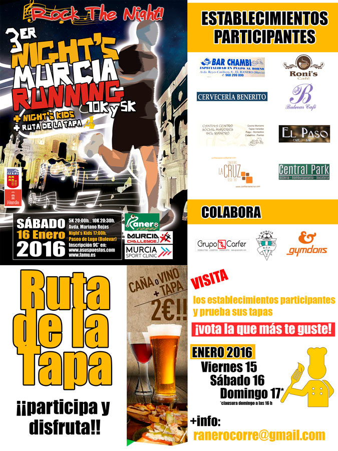 La prueba reina de este evento (Los 10K ) darán su salida a las 20.30 desde la avenida Mariano Rojas con llegada en el Campo de Futbol del Ranero .