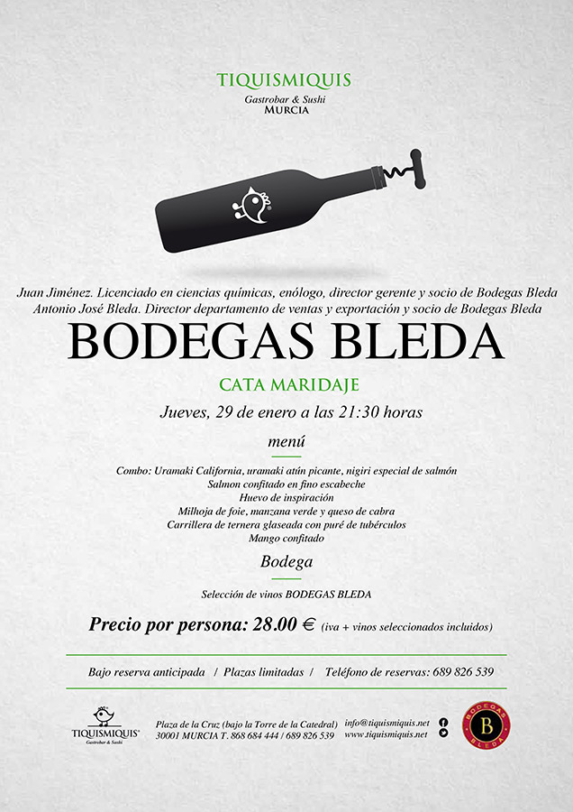 Cata Maridaje en Tiquismiquis con Bodegas Bleda_
