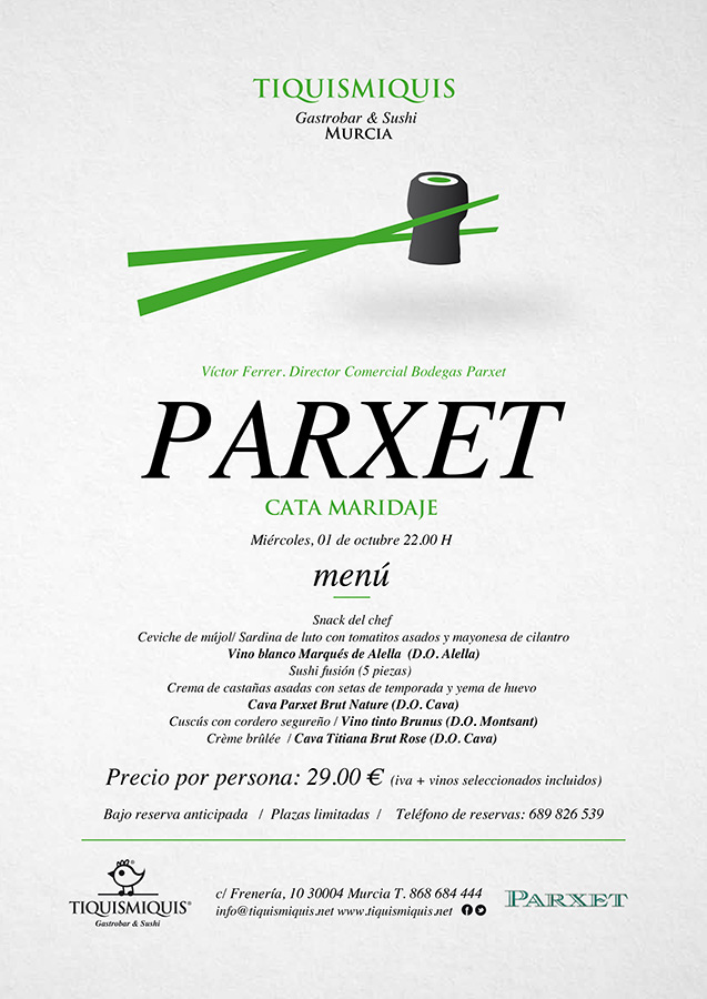 Este Miércoles 1 de Octubre a las 22:00, tenemos una cita con la gastronomia en "Tiquismiquis Gastrobar & Sushi", donde podremos hacer una cata maridaje de lo más variada.