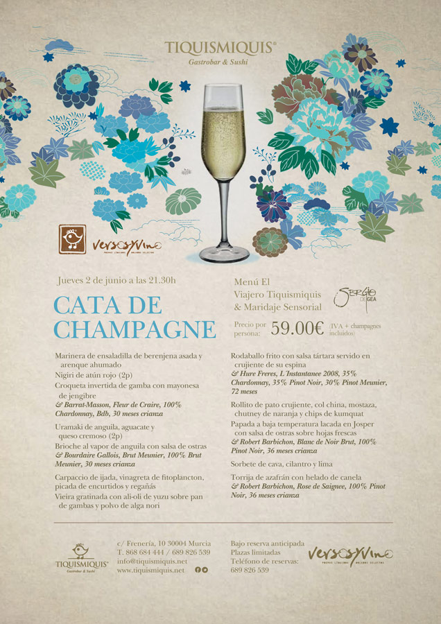 Precio: 59.00€ por persona (IVA y selección de champagnes incluidos)