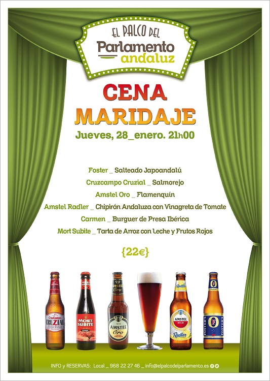 Éste próximo jueves, 28 de enero, el Palco del Parlamento Andaluz realizará una cena maridaje en la que se podrán degustar exquisitas tapas acompañadas de una cuidada selección de cervezas. El menú será el siguiente: