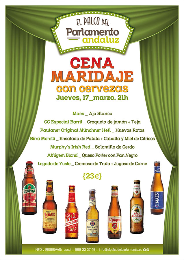 ¡El próximo jueves tendremos otra cena-maridaje de cervezas en El Palco del Parlamento Andaluz! Podréis probar las siguientes cervezas con sus respectivos maridajes