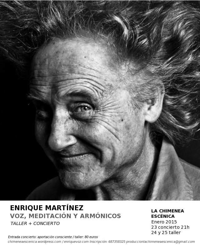 El próximo viernes 23 de enero, a las 21:00 tendrá lugar un concierto en la Chimenea Escénica, protagonizado por Enrique Martínez, utilizando su voz como insntrumento. La entrada es libre, con aportación libre e individual para los fondos de la asociación.