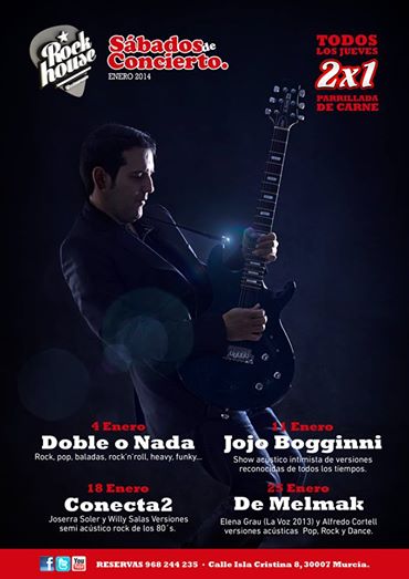 El Restaurante Rock House (Calle Isla Cristina 8, Murcia) nos ofrece su programación de conciertos para este mes de enero. Los sábados de concierto de Rock House nos ofrecen el mejor rock en un ambiente único. Los conciertos organizados para este mes de enero son los siguientes: