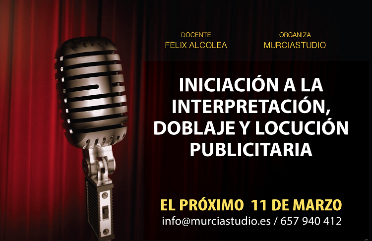 Félix Alcolea, docente desde hace varios años de murciaSTUDIO, impartirá durante el mes de marzo y en dos fines de semana el “Taller de iniciación a la Interpretación, al doblaje y a la locución publicitaria” en el que hará una inmersión en esta apasionante profesión y conseguirá que saques el máximo partido a tu voz y a tu forma de interpretar personajes.