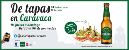 De jueves a domingo, del 13 al 30 de noviembre, los hosteleros caravaqueños ofrecerán tapas elaboradas y quintos al precio de dos euros.
