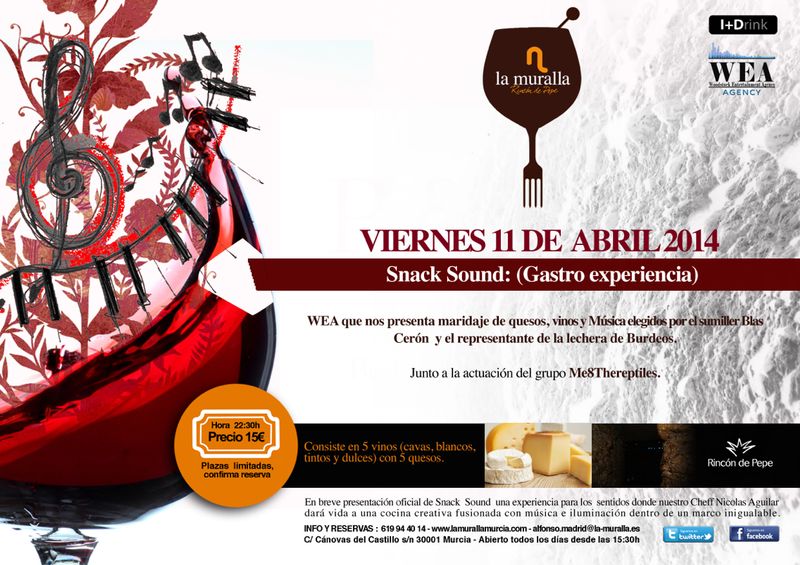 Todo amenizado por el grupo murciano Me&TheReptiles, que fusionan música electroindie con lives de violín electrónico y en un entorno histórico de nuestra ciudad... Café La Muralla (C/ Cánovas del castillo s/n, 30001, Murcia)