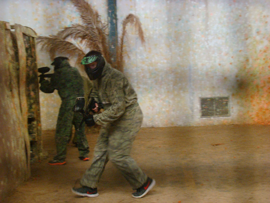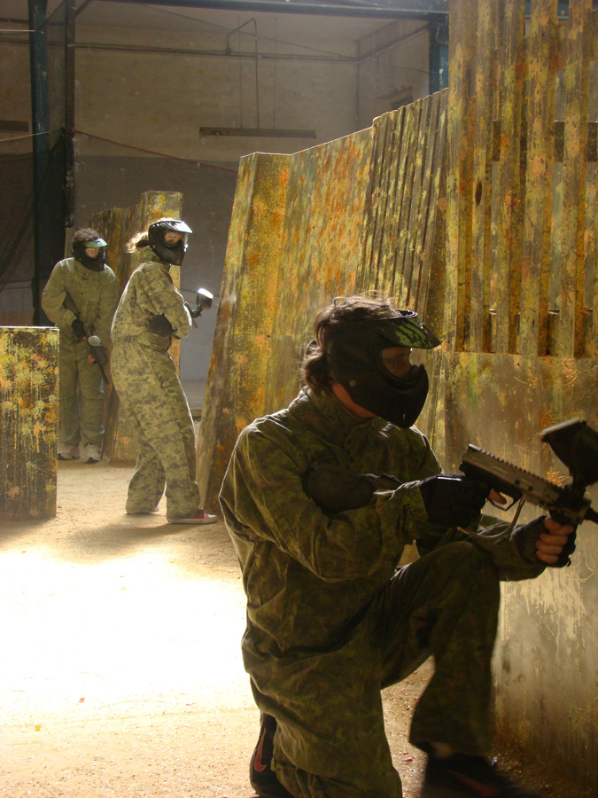 Al entrar te dan como siempre un mono completo de camuflaje, un peto protector, guantes, la máscara y la marcadora (que no pistola), y una charla introductoria sobre seguridad, para que salgáis de una pieza.