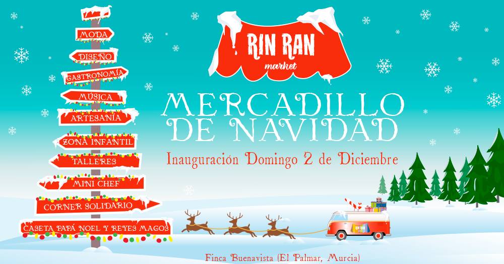 Este domingo 2 de diciembre Rin Ran Market inaugura su Mercadillo de Navidad. El concepto del mercado gastronómico y artesanal transforma sus 80 puestos con temática navideña. Como novedad de este mercadillo los visitantes podrán encontrara un corner solidario, donde se aunarán diferentes asociaciones murcianas y un punto de recogida para juguetes.