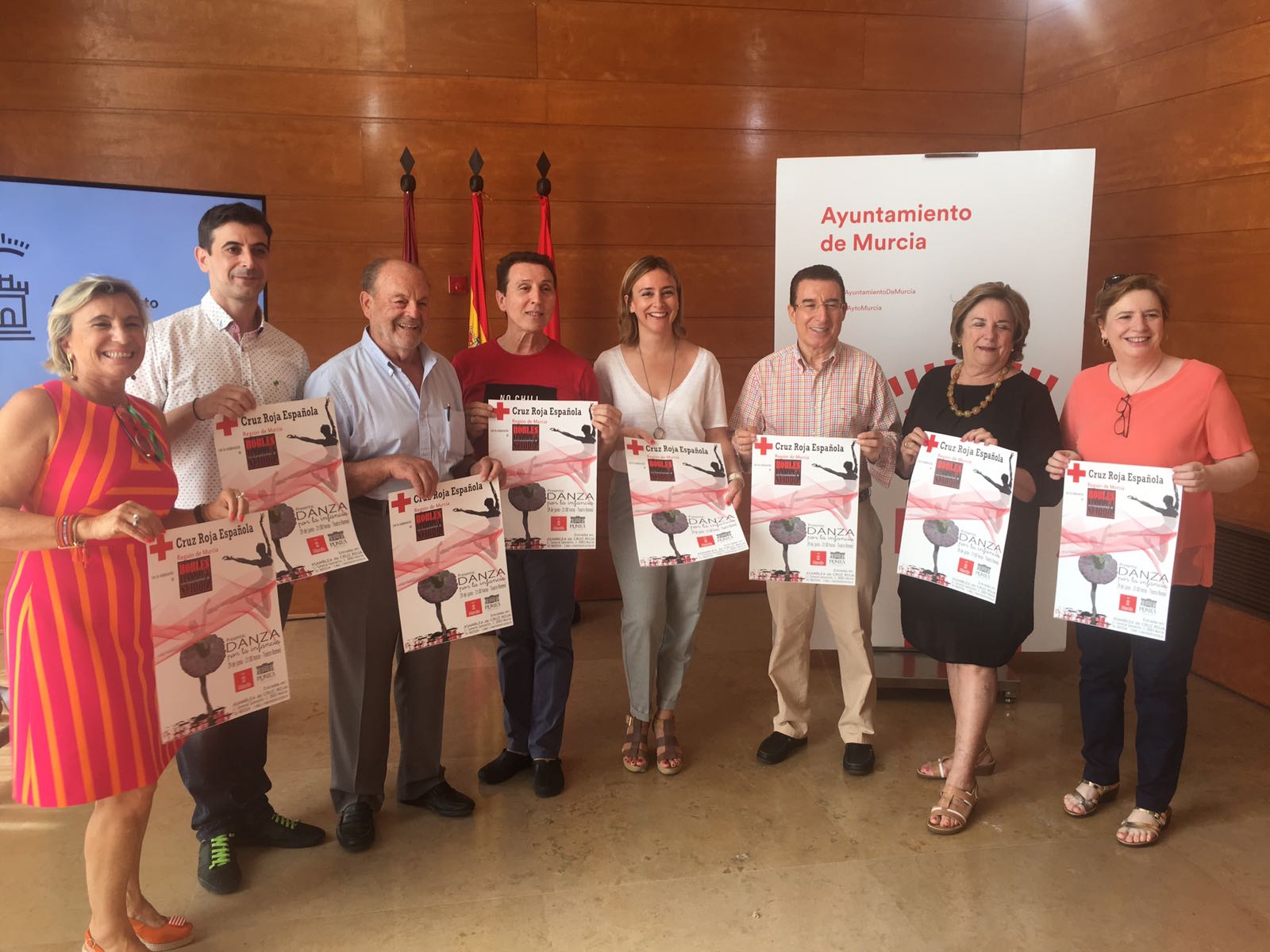 Junto a la concejala han estado presentes los directores de la compañía de danza, Alberto Muñoz Esparza y José Antonio Robles, así como la presidenta de Cruz Roja en Murcia, Mercedes Navarro.