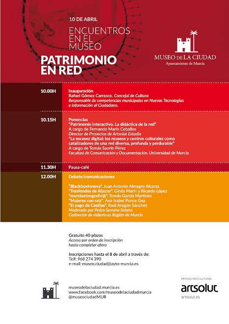 Inscripciones: hasta el 8 de abril a través del 968 274 390 o a través del correo electrónico museo.ciudad@ayto-murcia.es
