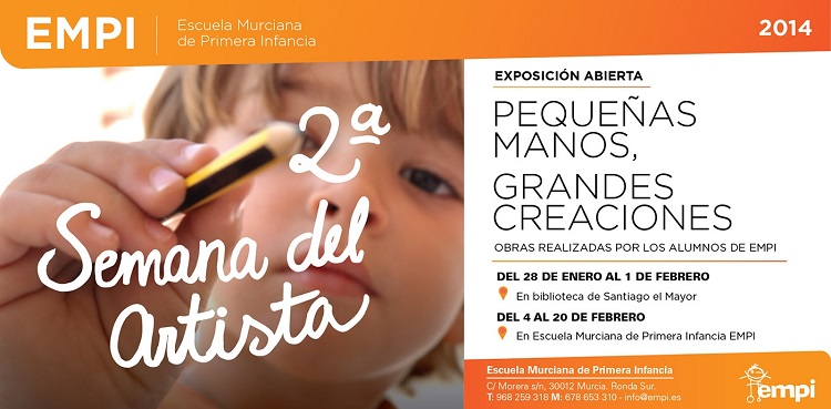 La Escuela Murciana de Primera Infancia (EMPI) ha organizado la exposición “Pequeñas Manos, Grandes Creaciones” que tendrá lugar del 28 de enero al 1 de febrero en la Biblioteca Santiago el Mayor de Murcia con motivo de la 2º Semana del Artista.