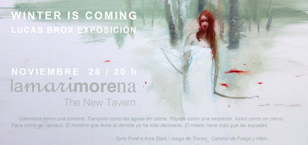 En estas frías fechas tendrá lugar la inauguración de la próxima exposición de Lucas Brox `Winter is Coming´ que será este jueves 28 de Noviembre a partir de las 20 h. en la segunda planta en el restaurante Lamarimorena de Molina de Segura.