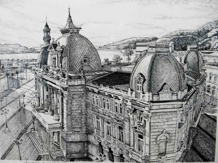 El pintor cartagenero Juan Martínez Pedrero se suma a la celebración del Año del Modernismo en Cartagena, con una muestra de obras en plumilla a las que ha dado color y en las que se refleja el esnobismo de una arquitectura que ha marcado la actual configuración urbanística de la ciudad, mostrando los elementos y detalles menos vistos de sus edificaciones.