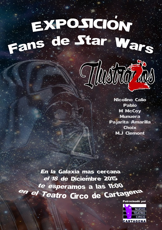 El pasado viernes 18 se inauguró en el Nuevo Teatro Circo de Cartagena la exposición "Fans de STAR-WARS". Las obras son ilustraciones del grupo de Ilustradores Cartageneros Ilustrazos entre los que se encuentran artistas como Nicolino Calio, Pablo, M McCoy, Munuera, Pajarita Amarilla, Choix y M.J. Clemont. La exposición estará en el teatro cartagenero un mes, hasta el 18 de enero de 2016.