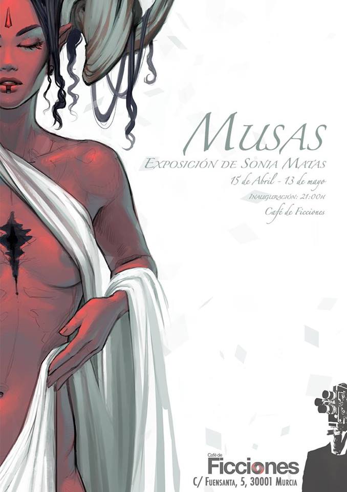 La Ilustradora Sonia MS nos trae su última exposición, "Musas". La inauguración será el Viernes 15 de Abril a las 21:00 en Café Ficciones. Coincidiendo con el primer aniversario de la primera que se hizo sobre sus musas en Murcia aquí llega la segunda entrega de este relato de color, naturaleza y feminidad.