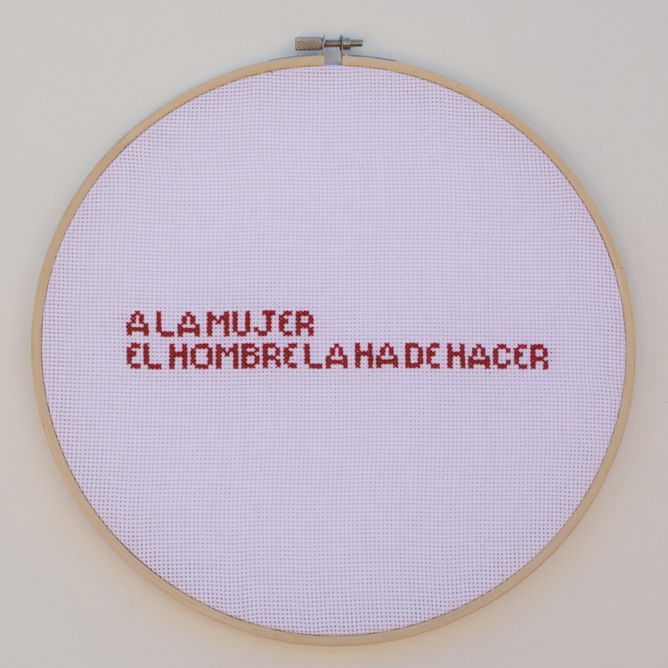 "Tradición forzada" es una instalación compuesta de 20 refranes escritos a punto de cruz, una camisa de fuerza realizada con venda elástica crêpe y medio kilómetro de hilo rojo, cuyo objetivo es hacer reflexionar en torno a los estereotipos, prejuicios y discriminación de género presente en ciertos refranes españoles que configuran la tradición y valores que se han ido transmitiendo de generación en generación y de los cuales, algunos de ellos, siguen vivos en la actualidad.