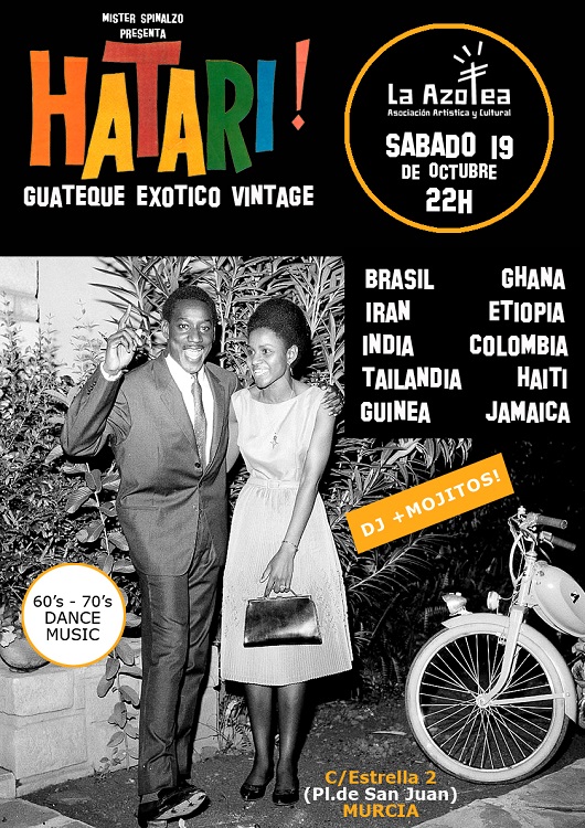 Este próximo sábado, 19 de octubre, tendrá lugar en La Azotea (c/estrella 2 / Plaza de San Juan) una nueva fiesta HATARI! Guateque Exótico Musical de la mano de Mathias Gomez (también conocido como Mr. Spinalzo).