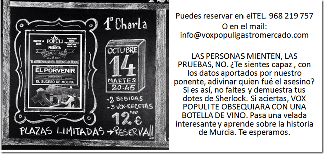 Plazas limitadas, reservas en el 968 219 757 o info@voxpopuligastromercado.com