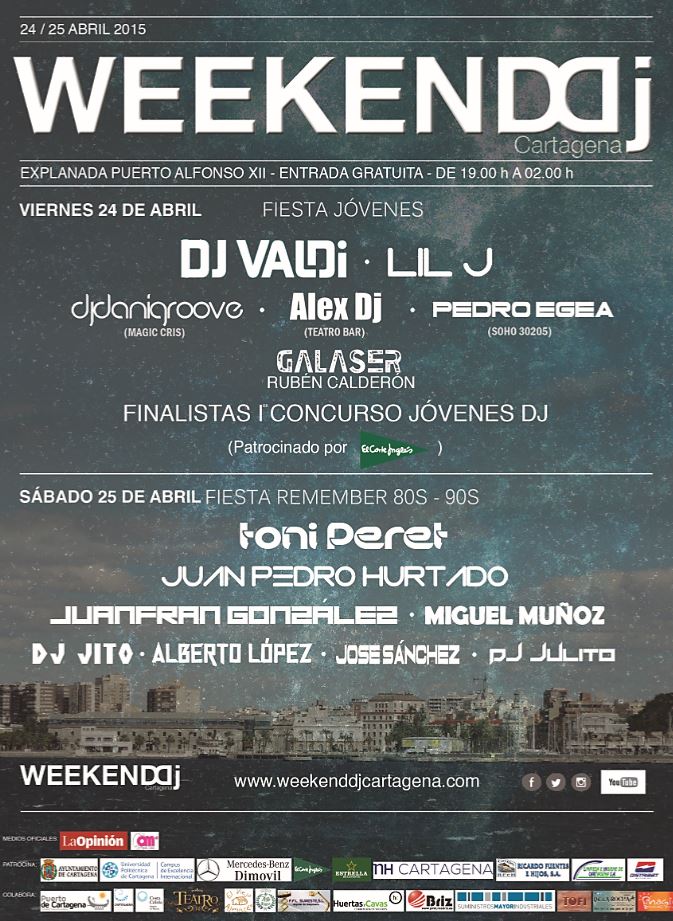 El I Festival Weekend DJ Cartagena se trata de un acontecimiento musical gratuito que traerá a la ciudad a grandes Dj's como Valdi, el Dj del programa El Hormiguero de Antena 3 Televisión, el mítico Tony Peret, creador de los Max Mix, o la cantante Lil J, la gran sensación de la música dance para este verano en España.