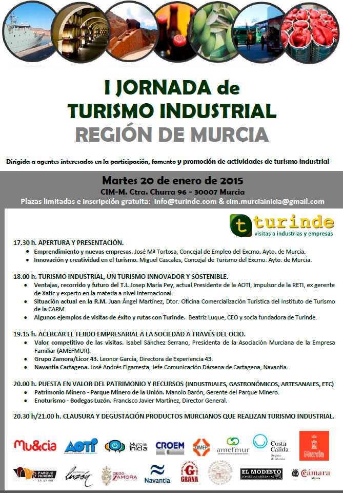 La I Jornada de Turismo Industrial de la Región de Murcia tendrá el siguiente programa: