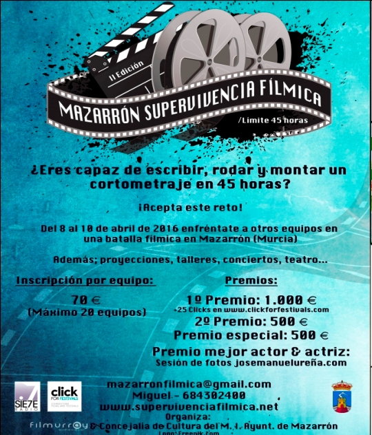 Durante el fin de semana del 8 al 10 de abril, Mazarrón será punto de encuentro para profesionales y aficionados del mundo del cortometraje gracias al II Certamen de Supervivencia Fílmica.