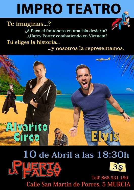 El próximo domingo 10 de abril, a partir de las 18:30 horas, La Puerta Falsa se llenará de risas con el ImproTeatro de Elvis y Alvarito Circo.