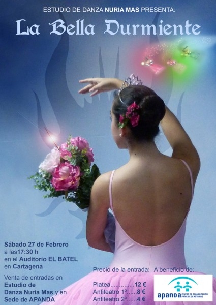 El Auditorio y Palacio de Congresos El Batel acogerá este sábado, 27 de febrero, el espectáculo de baile "La Bella Durmiente" interpretado por los alumnos del estudio de danza Nuria Mas. Todos los beneficios de la obra serán donados a APANDA, asociación de Padres de Niños con Discapacidad Auditiva de Cartagena, que tiene como objetivo fomentar y reforzar la participación activa de las personas con sordera y sus familias en la sociedad, en aras de conseguir las mismas oportunidades y mejorar su calidad de vida.