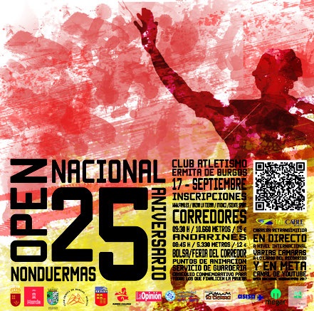 El sábado 16 de septiembre se realizará la XXV Carrera de Nonduermas, con edición Infantil y el domingo 17 se llevará a cabo un paseo saludable con un recorrido de 5.300 metros, una marcha con atletas en silla de ruedas adaptada y el gran ‘Open Nacional’ con salida a las 9.30 de la mañana, que consta de un itinerario de 10.660 metros y cuya inscripción cuesta 15 euros.