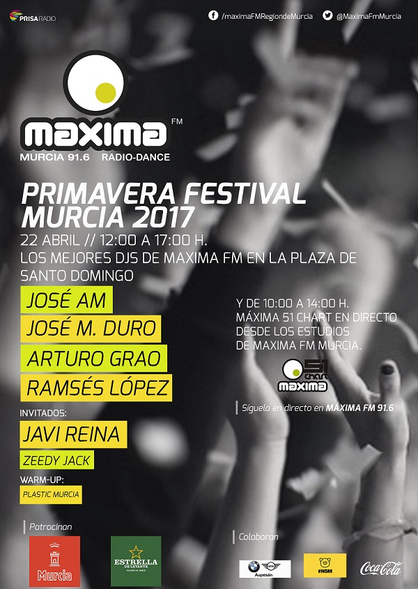 Los djs de Maxima: Jose Am, Jose Manuel Duro, Ramses Lopez y Arturo Grao, junto a invitados como Javi Reina y djs murcianos como Zeddy Jack, serán los encargados de pilotar la cabina show espectacular desde donde se proyectaran todos los éxitos de la emisora dance más importante del país.