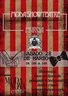 La primera edición de este “Moda Show Teatre” es para dar a conocer y difundir aquellas firmas o marcas made in spain, diseñadores jóvenes y noveles que quieran abrir horizontes en la provincia de Murcia, de dos formas diferentes, mediante el showroom o escaparate donde el cliente podrá conocer de la mano de su creadores sus marcas y mediante desfiles donde los clientes y curiosos que vengan a visitarnos ¡podrán ver in situ como quedan los fantásticos productos!.